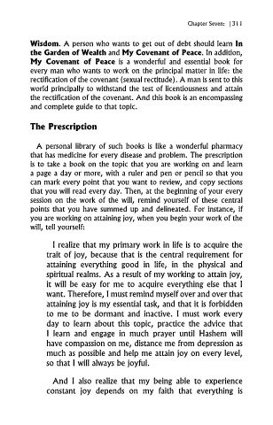 Chapter Seven: Wisdom. A person who wants to get out of debt should learn In the trait of joy. Help me always remember that