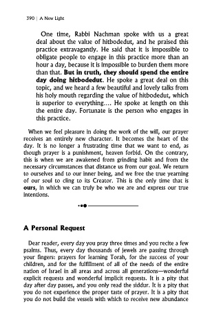 day doing hitbodedut. He spoke a great deal on this