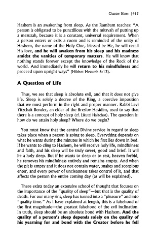 (ibid. 50): “As a result of a person’s yearning at night for Hashem, death. For our many sins, sleep has turned into a “pleasure” and into I knew a tzaddik who tried to fight against his sleep by force. In