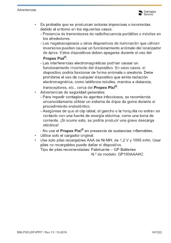 barra de la zona preapical, se enciende el «2.0» (consulte la Fig. 9) y suena - Presencia de transmisores de radiofrecuencia portátiles o móviles en