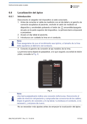 determinada por medio del localizador de ápice. situado en la parte superior del dispositivo. La primera barra empezará