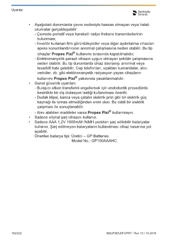 cihazlar Propex Pixi kullanımı sırasında kapatılmalıdır;