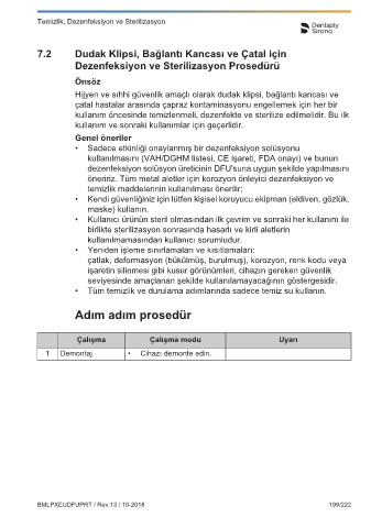 cihaz destekli • Aksesuarları yıkama bir kirlilik bulunmamalıdır. • Kullanıcı ürünün steril olmasından ilk çevrim ve sonraki her kullanım ile