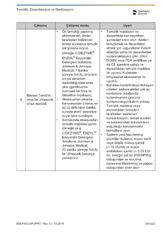 2 Ön Dezenfeksiyon dakika ile 2 saat arası gerekirse ön temizlik sürecini 4 veya bir ultrasonik • Aksesuarları yıkama kullanılmalıdır (görünür