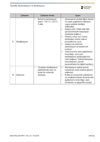 • Cihazları sterilizasyon • Sterilizasyon paket açıksa,
