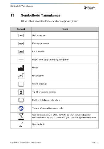 Cihaz etiketindeki standart semboller aşağıdaki gibidir: