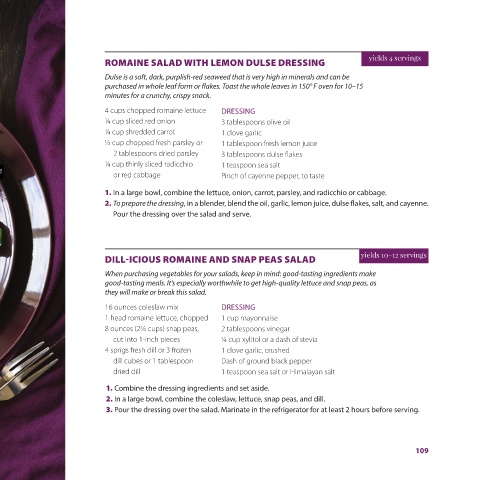 Cabbage ROMAINE SALAD WITH LEMON DULSE DRESSING yields 4 servings