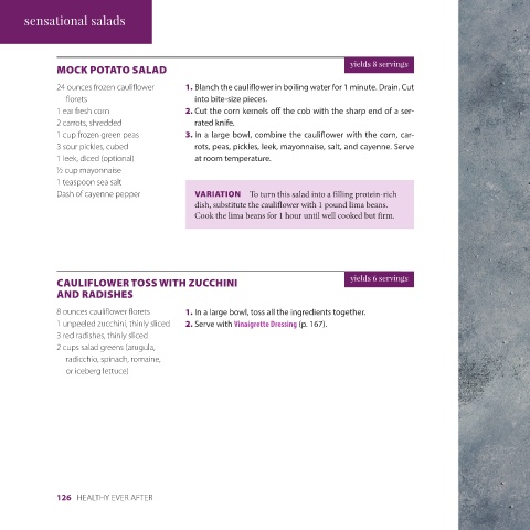 1 cup frozen green peas 3. In a large bowl, combine the cauliflower with the corn, car- yields 4 servings