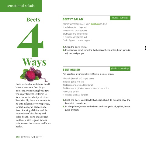 BEET RELISH yields 2–4 servings ¼ cup cold-pressed oil 3. Drizzle the oil and squeeze the fresh lemon over the salad