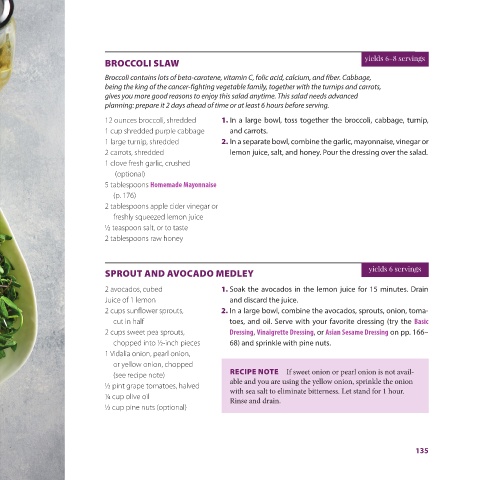 avocado. Serve immediately. 2 cups sweet pea sprouts, Dressing, Vinaigrette Dressing, or Asian Sesame Dressing on pp. 166–