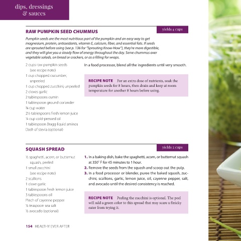 dips, dressings yields 1½–2 cups onion erator in a glass container. ingredients well. Store in the refrig- In a medium bowl, combine all the Pinch of cayenne pepper 1 small clove garlic, crushed 1 teaspoon minced fresh basil 1 teaspoon minced fresh parsley 1 tablespoon finely minced red 1 tablespoon chopped pine nuts 1 cup Nondairy Farmer Cheese (p. 196) CHEESE SPREAD HERBED PAREVE Raw Pumpkin Seed Chummus yields 4 servings yields 6 servings resembles egg salad