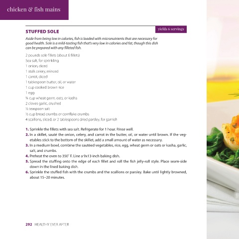 6. Sprinkle the stuffed fish with the crumbs and the scallions or parsley. Bake until lightly browned, 4. In a frying pan, heat the oil or water over high heat. Sear the cutlets in the hot oil for 30 seconds,