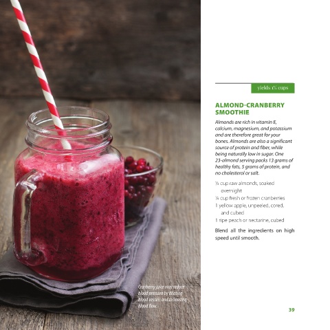 46 HEALTHY EVER AFTER cess. smooth, using enough water just to start the blending pro- Blend all the ingredients until very smooth. Blend all the ingredients for 3–5 minutes. Serve immediately. 2. Add the kiwis, and blend for another 30 seconds. 1. Blend the avocado, pineapple, water, and hemp seeds until or almond) (such as coconut, rice, soy, 2 tablespoons raw honey ½ teaspoon pure vanilla extract 2 cups cranberry juice 3 cups frozen strawberries 8 ounces silken tofu straw