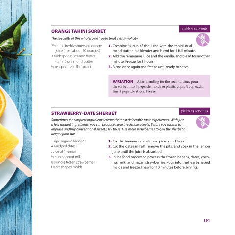 8 dates, pitted the sorbet into 6 popsicle molds or plastic cups, ½ cup each.