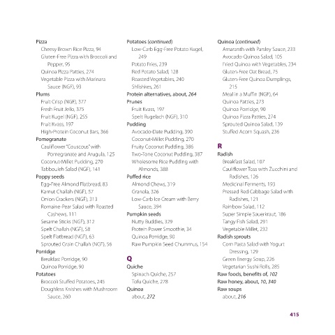 Spelt Flatbread (NGF), 63 Cheesy “Zoodles” with Tomato Marinara Sauce, 113 Cauliflower “Couscous” with Fruity Coconut Pudding, 386 R