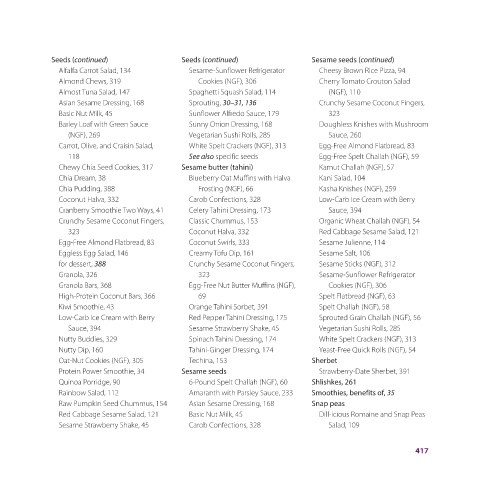 Sesame-Sunflower Refrigerator Kombucha, 190 Tabbouleh Salad (NGF), 141 Protein Power Smoothie, 34 Sesame seeds Strawberry-Date Sherbet, 391