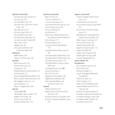 Orange Tahini Sorbet, 391 342 Tofu Spice Cookies (NGF), 309 Spinach Pesto Salad with Tortilla Dry Roasted Peanut Sprouts, 139 Extraordinary Squash Soup (NGF),