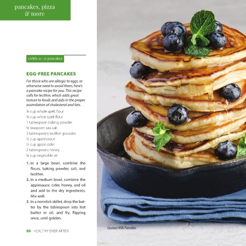 pancakes, pizza Gluten-Free Waffles with Berry Sauce Cheeseless Cheese Blintzes with Strawberry Sauce Sweet Cheese Crepes Whole Grain Crepes Gluten-Free Pizza with Broccoli and Pepper Cheesy Brown Rice Pizza Vegetable Pizza with Marinara Sauce Open-Face Grilled Cheese with Avocado and Alfalfa Apple Cider Biscuits Breakfast Porridge Quinoa Porridge Breakfast Peanut Butter Pancakes Coconut Milk Pancakes Egg-Free Pancakes K