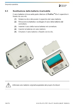 6.3 Sostituzione della batteria ricaricabile • Per la localizzazione dell'apice, le concentrazioni di NaOCl