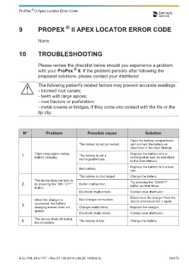 N° Operation Operating mode Warning 9 PROPEX II APEX LOCATOR ERROR CODE