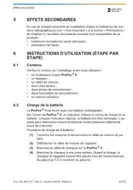 (1) Débranchez le chargeur de l’appareil si celui-ci est branché. En cas de mesure incorrecte du localisateur d’apex et d’absence de don-