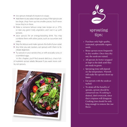 Svibrant salads…salads with fruit, nuts, and every raw Of all raw foods available, sprouts offer the highest level Juice sprouts for an energy-boosting drink. You may tips: