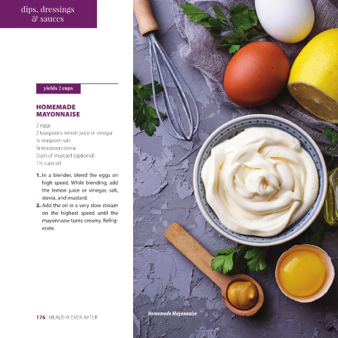 # yields 1 cup yields 1½ cups Dash of stevia 1/8 teaspoon cayenne pepper (optional) ¼ teaspoon onion powder 1/8 teaspoon garlic powder 1/3 cup water ¼ cup oil Dash of stevia or salt In a blender, blend all the ingredients until smooth. Store in the refrigerator for 1–2 days. ½ teaspoon Bragg liquid aminos 3 tablespoons oil 1 tablespoon lemon juice 1 avocado SPICED AVOCADO MAYONNAISE In a blender, blend all the ingredients until smooth. ½ te