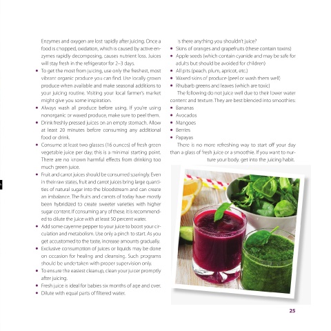 Enzymes and oxygen are lost rapidly after juicing. Once a Is there anything you shouldn’t juice?