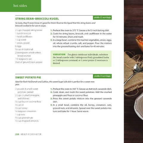 STRING BEAN–BROCCOLI KUGEL yields 12 servings LOW-CARB GARLIC-CAULIFLOWER MASH yields 4 servings
