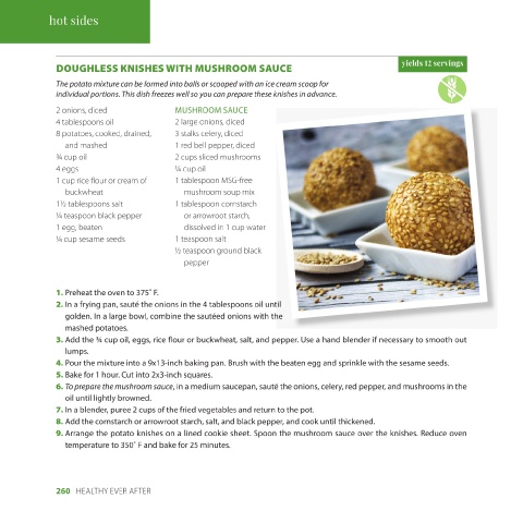DOUGHLESS KNISHES WITH MUSHROOM SAUCE yields 12 servings