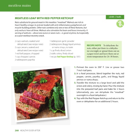MEATLESS LOAF WITH RED PEPPER KETCHUP yields 2 loafs QUINOA PATTIES yields 8–10 patties #