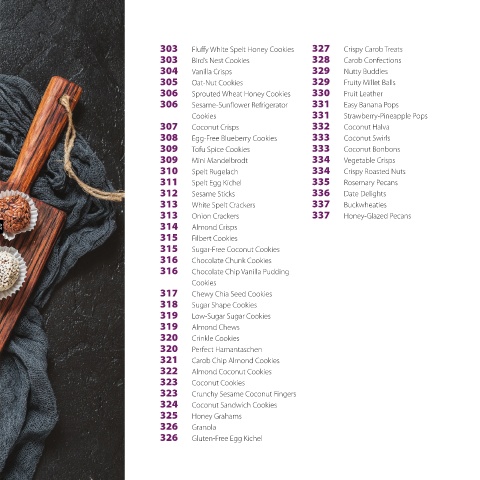 305 Oat-Nut Cookies 329 Fruity Millet Balls