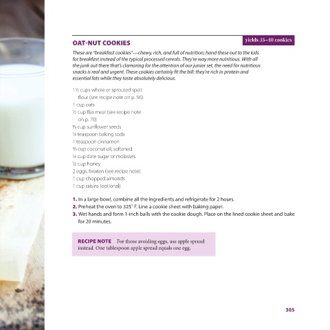 # yields 24 cookies yields 25 cookies sheet and bake until lightly browned, for 10–15 minutes. ture to the flour mixture. ginger, nutmeg, cinnamon, salt, and vanilla. Add the tofu mix- and baking soda. paper. 4. Drop the batter by the teaspoonful onto the lined baking 3. In a blender or food processor, puree the honey, tofu, egg, oil, 2. In a large mixing bowl, combine the flour, raisins, dates, nuts, 1. Preheat the oven to 400˚ F. Line a cookie sheet with baking is first forme
