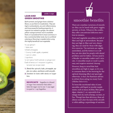of fruit over time. As you progress, 1. Blend the spinach, kale, pineapple, ap- smoothies are high in sugar, so it’s wise