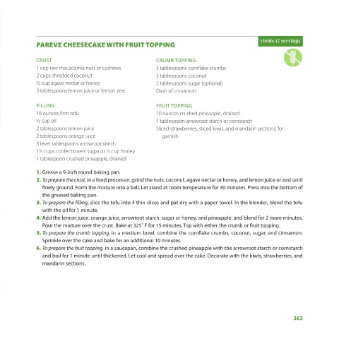 363 366 HEALTHY EVER AFTER 5. Bake for 40 minutes. When slight- 4. Spread the batter onto the lined 3. Add the cacao powder, stevia, 2. In the bowl of an electric mixer, 1. Preheat the oven to 350˚ F. Line a ½ cup shredded coconut, for 1 cup cubed fruits (apples, plums, ½ cup ground chia seeds ½ cup almond milk 4 eggs 1 teaspoon stevia 1 cup cacao powder ¾ cup chopp