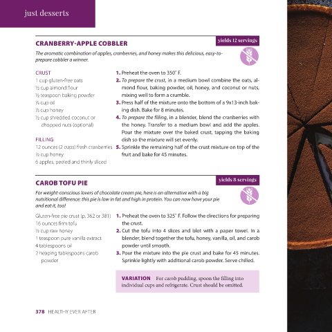 CAROB TOFU PIE yields 8 servings 1. In a medium bowl, combine the