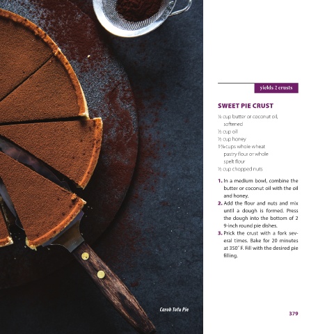 CAROB TOFU PIE yields 8 servings 1. In a medium bowl, combine the