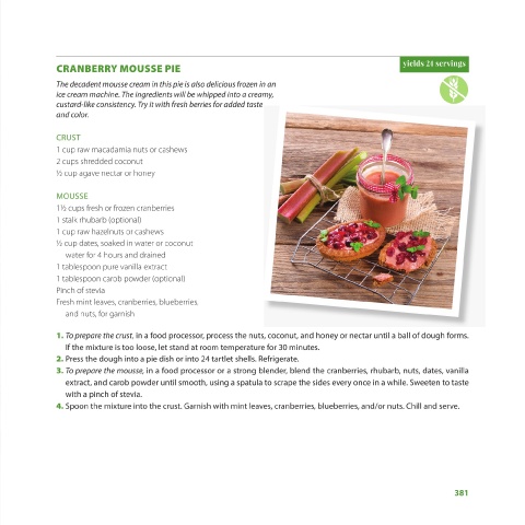 1 egg 4. Bake at 350˚ F for 1½ hours. 4. Spoon the mixture into the crust. Garnish with mint leaves, cranberries, blueberries, and/or nuts. Chill and serve.