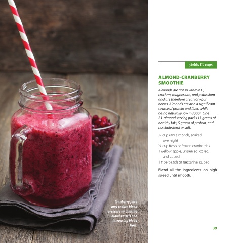 46 HEALTHY EVER AFTER cess. smooth, using enough water just to start the blending pro- Blend all the ingredients until very smooth. Blend all the ingredients for 3–5 minutes. Serve immediately. 2. Add the kiwis, and blend for another 30 seconds. 1. Blend the avocado, pineapple, water, and hemp seeds until or almond) (such as coconut, rice, soy, 2 tablespoons raw honey ½ teaspoon pure vanilla extract 2 cups cranberry juice 3 cups frozen strawberries 8 ounces silken tofu straw