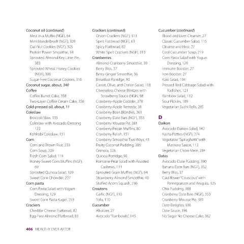 Coconut oil (continued) Crackers (continued) Cucumber (continued) Dates (continued) Egg kichel Fish (continued)