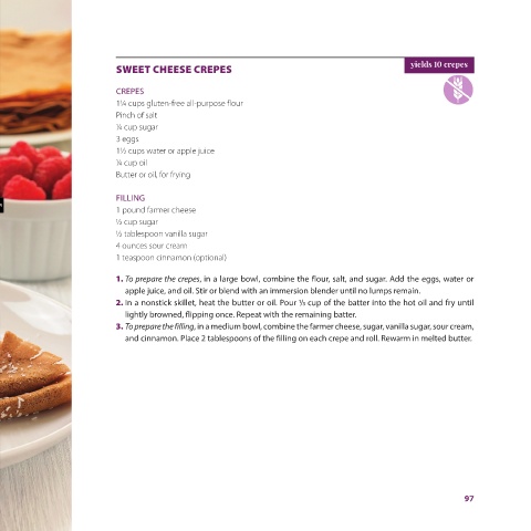 Juice of ½ lemon and cinnamon. Place 2 tablespoons of the filling on each crepe and roll. Rewarm in melted butter.