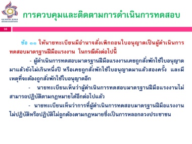 - ผู้ดําเนินการทดสอบมาตรฐานฝีมือแรงงานเคยถูกสั่งพักใช้ใบอนุญาต
