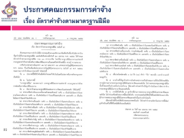 ประกาศคณะกรรมการค่าจ้าง เรื่อง อัตราค่าจ้างตามมาตรฐานฝีมือ 52