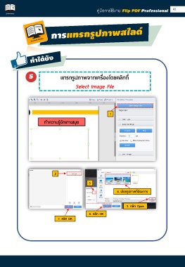 คู่มือการใช้งาน 41 ่ ่ แทรกรูปภาพจากเครืองโดยคลิกที Select Image File 1 2 3 ่ 4. เลือกรูปภาพทีต้องการ 5. คลิก Open 6. คลิก OK 7. คลิก OK