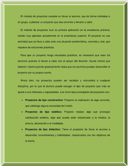 El método de proyectos consiste en llevar al alumno, sea de forma individual o