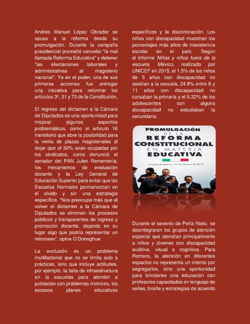 llamada Reforma Educativa” y detener el informe Niñas y niños fuera de la