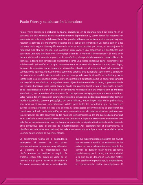 Paulo Freire comienza a elaborar su teoría pedagógica en la segunda mitad del siglo XX en el