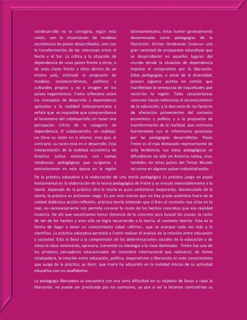 contrario, su razón está en el desarrollo. Esta Freire es el más destacado representante de