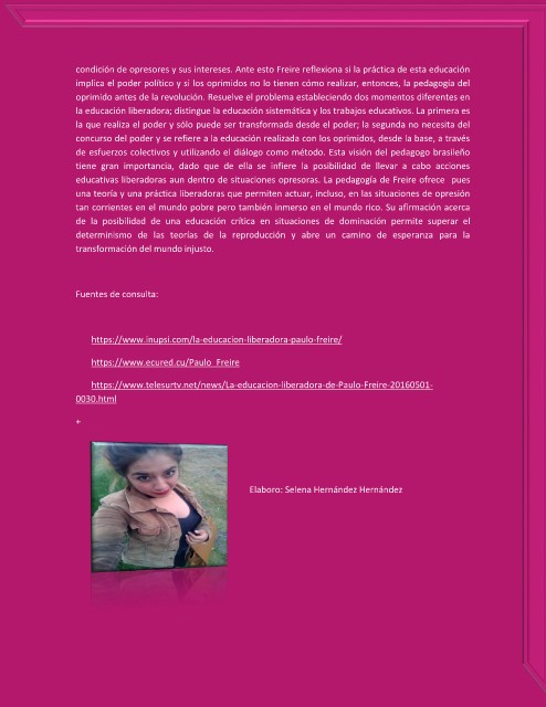educativas liberadoras aun dentro de situaciones opresoras. La pedagogía de Freire ofrece pues
