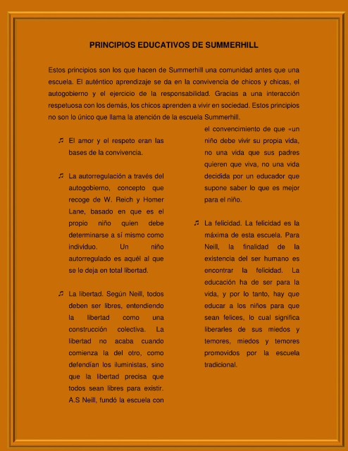 PRINCIPIOS EDUCATIVOS DE SUMMERHILL